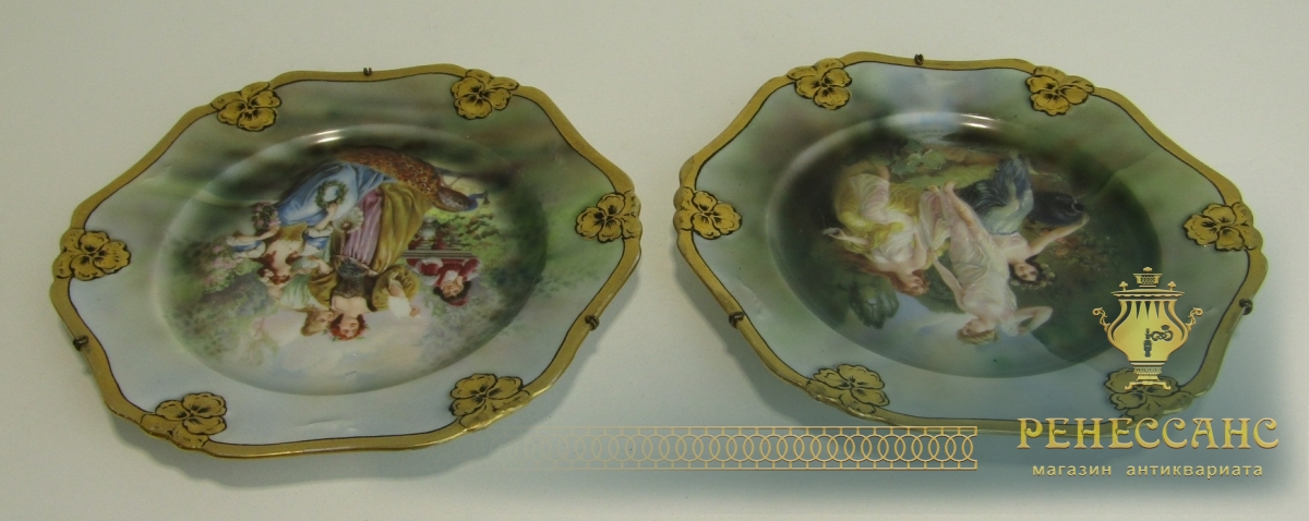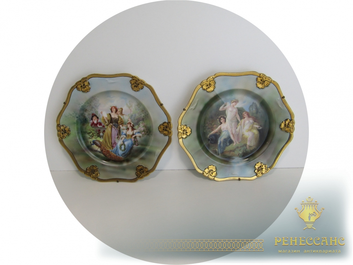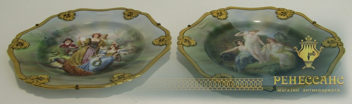 Старинная декоративная настенная тарелка с ручной росписью, панно Редкая!!! Пара №13781