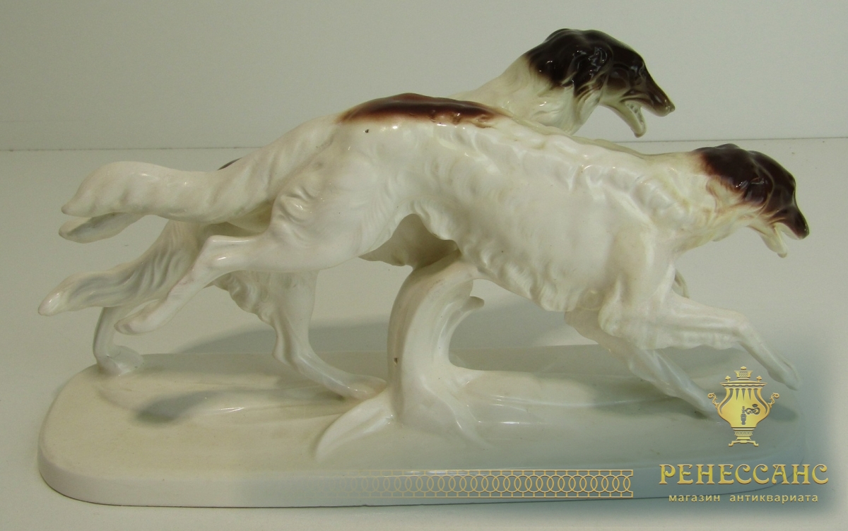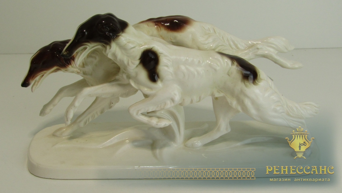 Фигура, статуэтка старинная "Собаки Борзые" №13564Клеймо на фото. Германия?Высота 17,5 см, длина 34 см