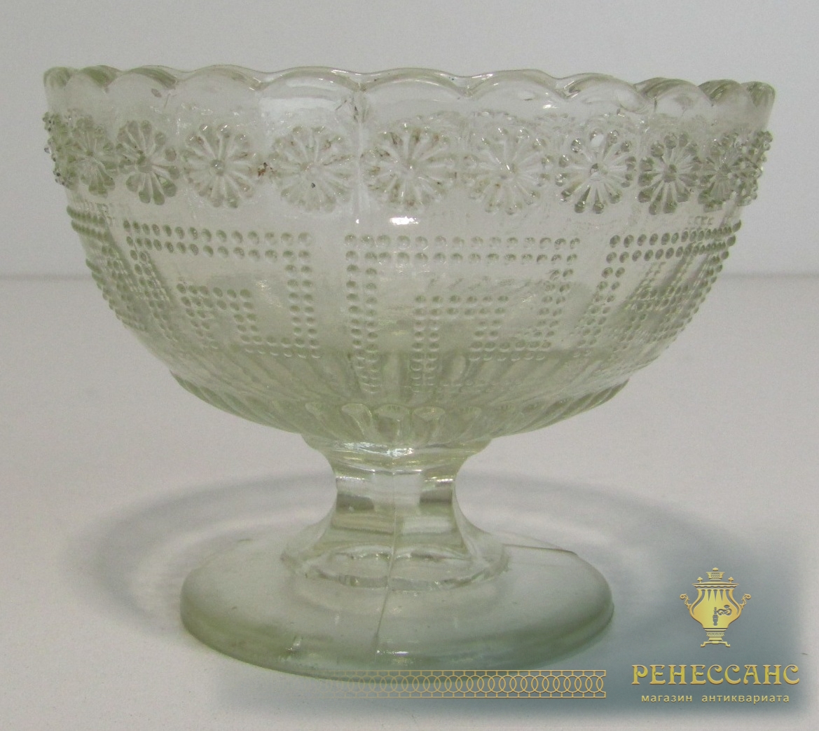 Вазочка старинная, конфетница, креманка №13945Мальцов? 19 век СтеклоВысота 8,2 см, диаметр 10,5 см
