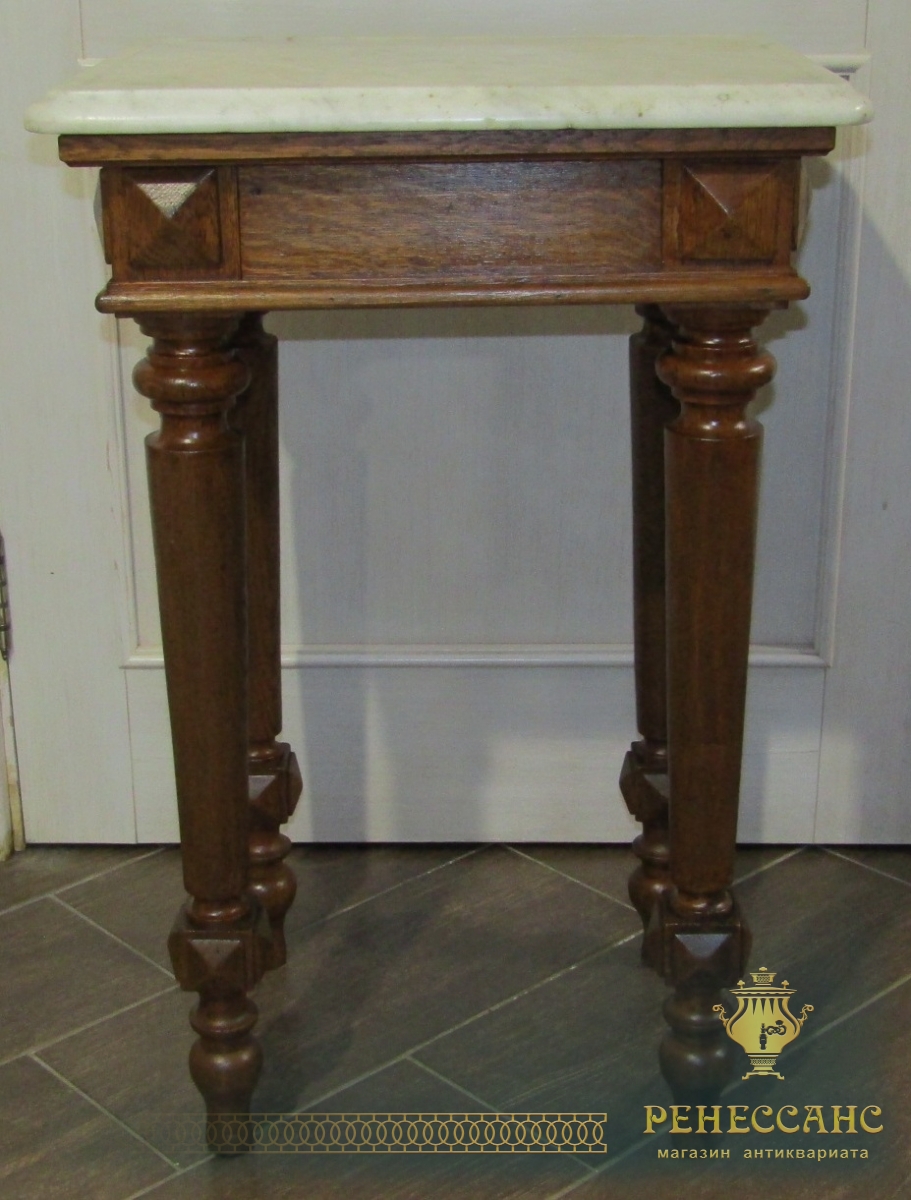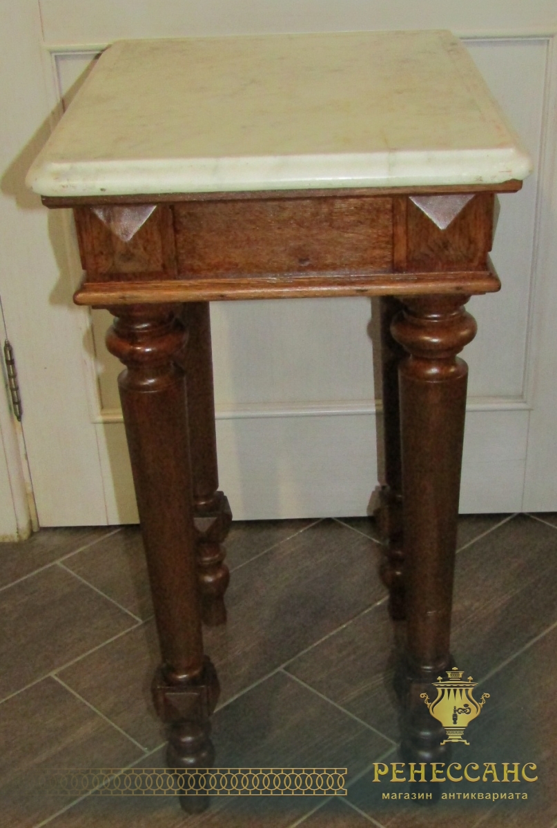 Столик, стол старинный под самовар с мраморной столешницей №13561