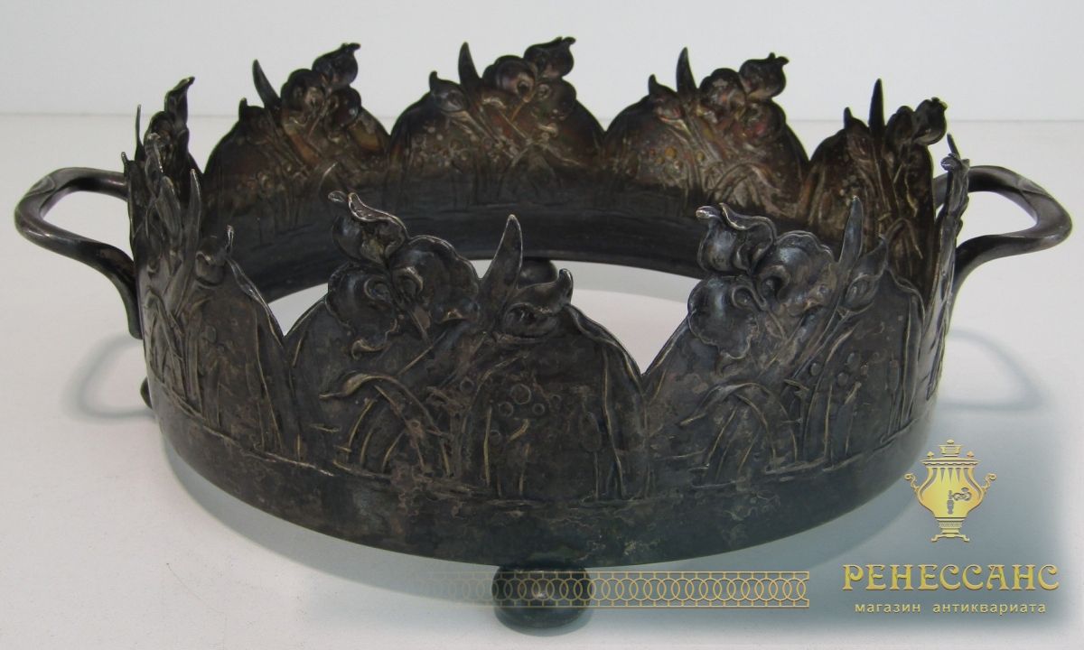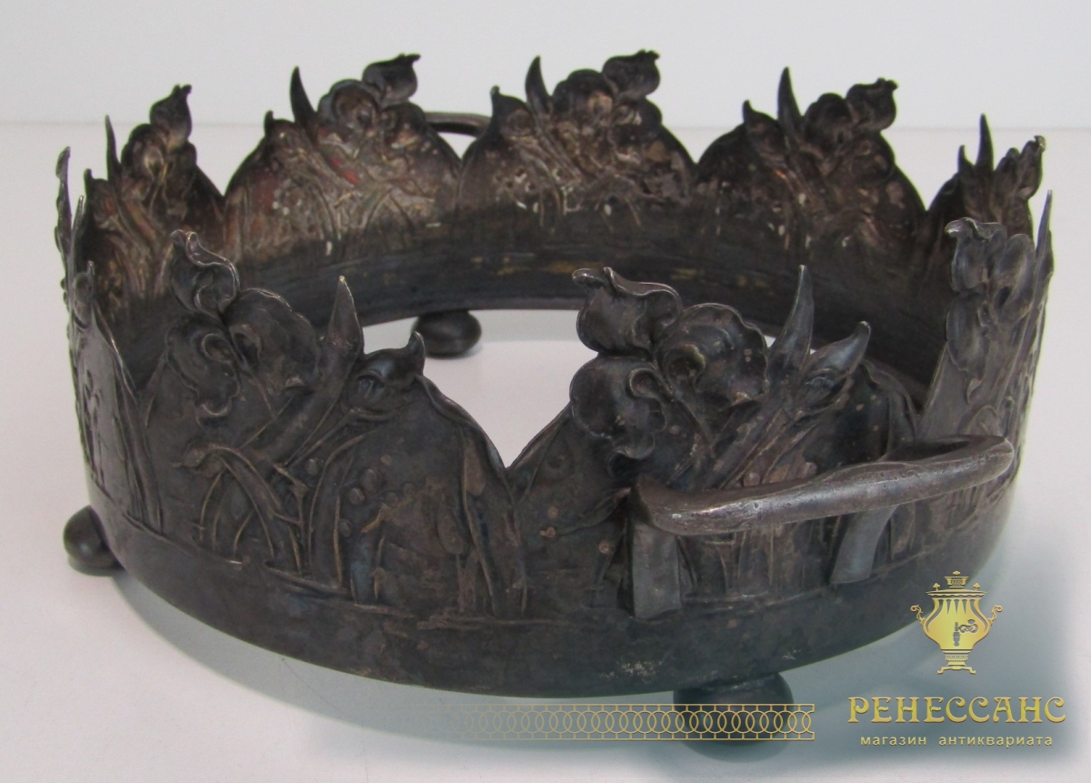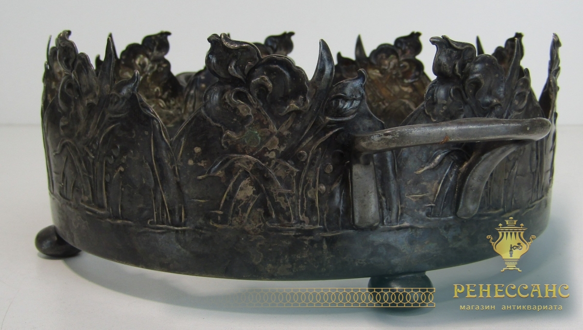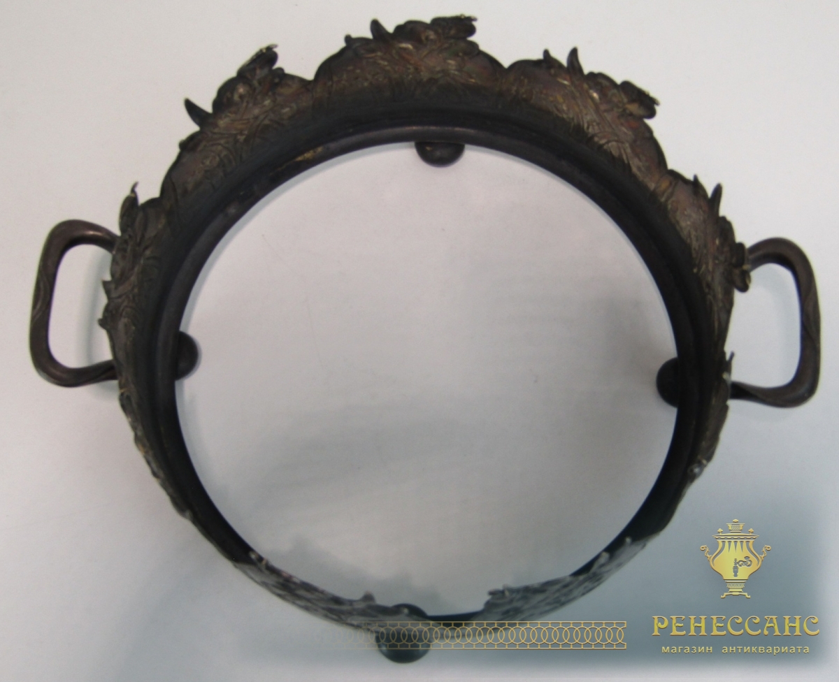 Клеймо не нашел. Фраже? 19-20 векВысота 8,8 см, ширина с ручками 27 см, диаметр под стекло 20,5 см, высота 7 смЛатунь, серебрениеОтличное состояние