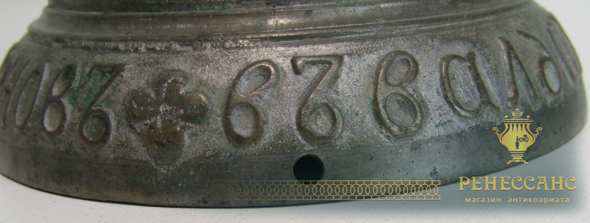 "Въ Валдаъ 1807 Мастеръ * Iванъ * Смирновъ *" Россия 19 векВысота 10 см, диаметр 10,6 см Бронза
