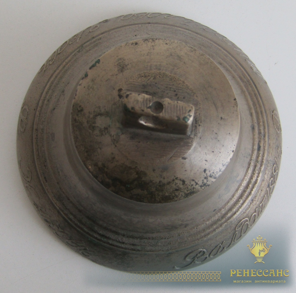 "Валдай 1881 г Д Михайлова Яковъ Ф. Жуковъ" Россия 19 векВысота 11,7 см, диаметр 13,7 см Бронза