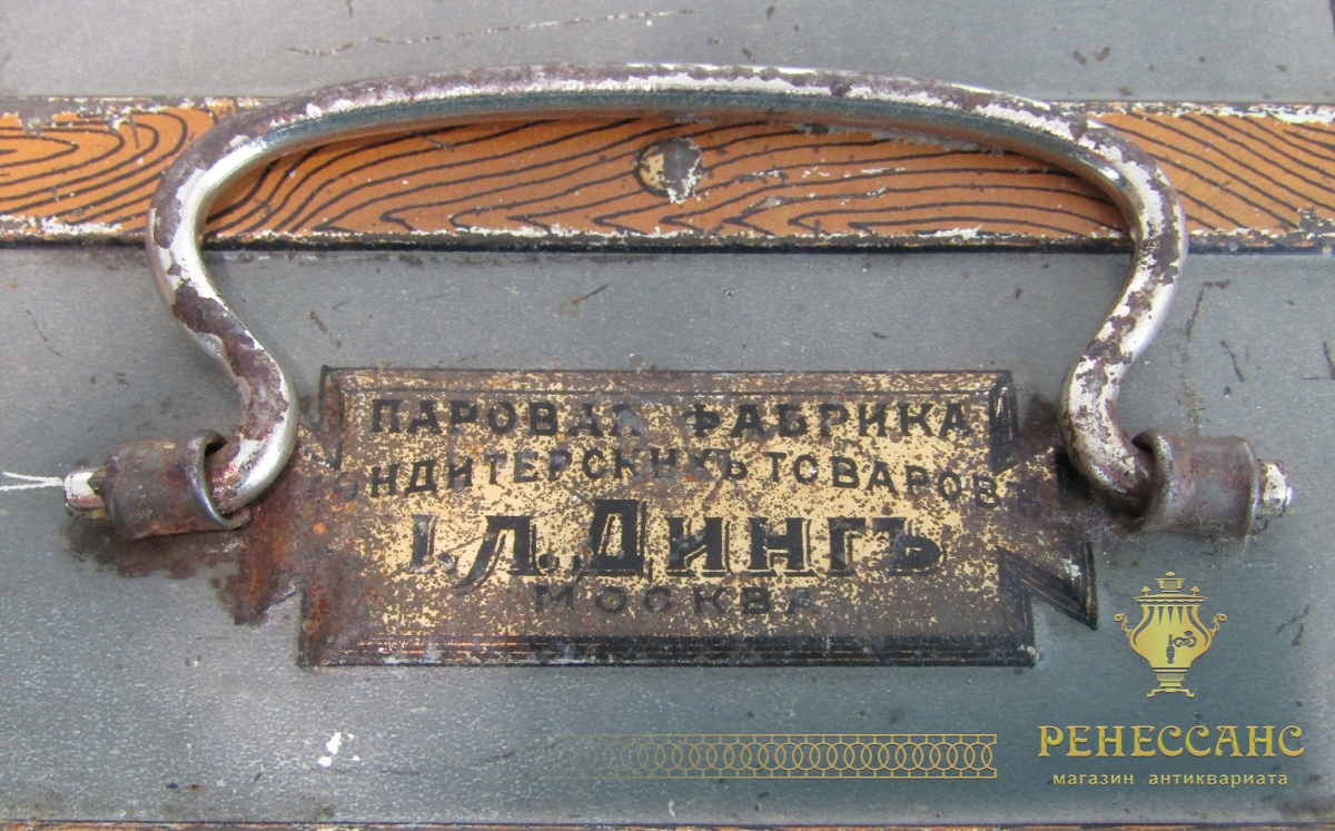 "Паровая фабрика Динг" Москва 19-20 век Выполнена из жестиВысота 16,3 см, габариты 16,7*24,5 см