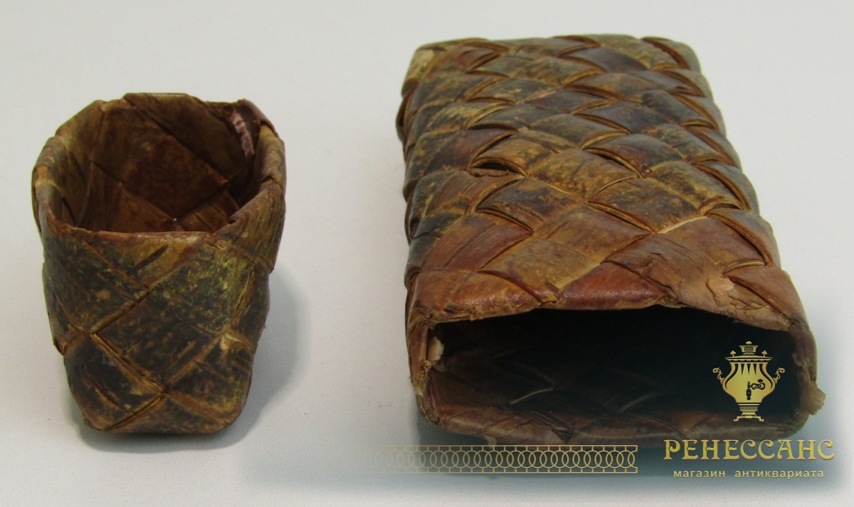Туясок старинный из бересты, футляр, коробочка №13694