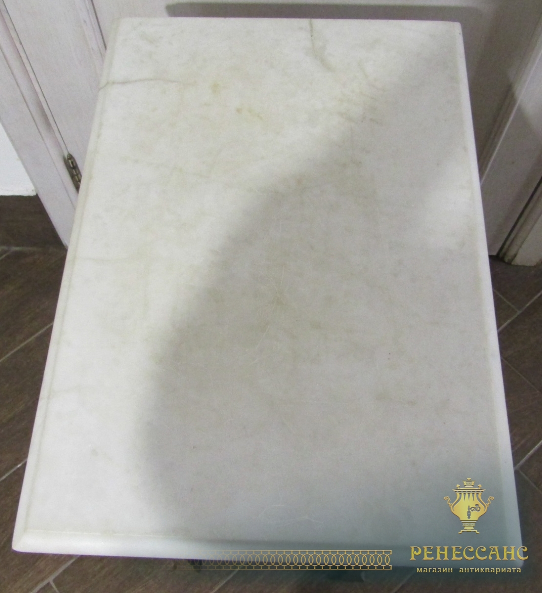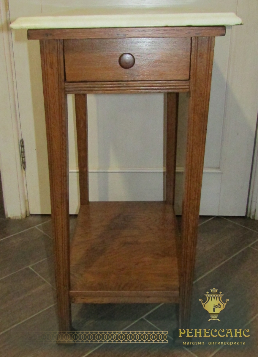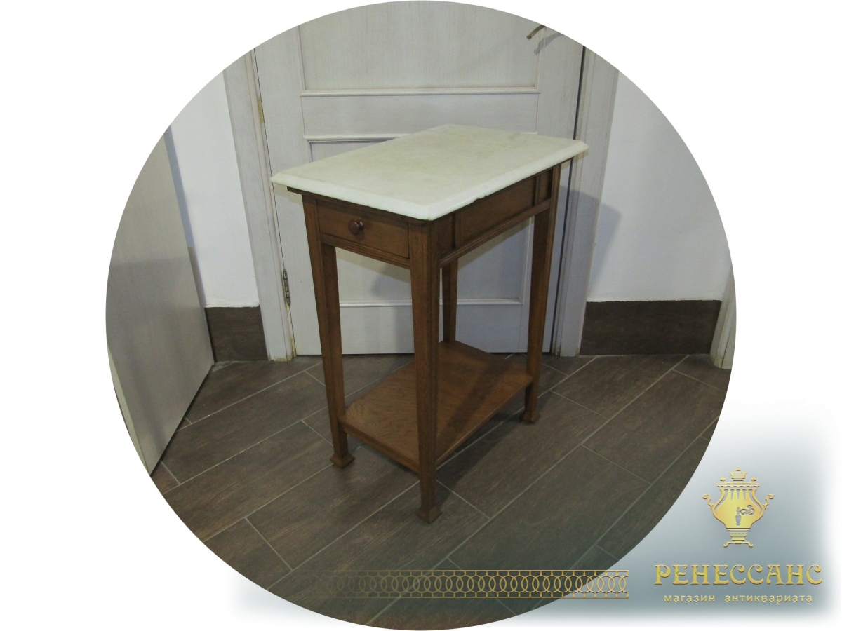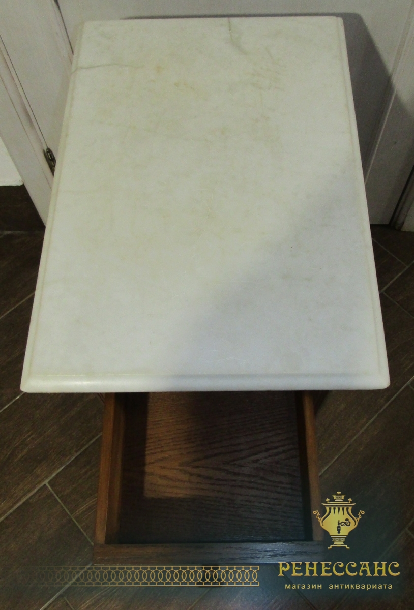 Столик, стол старинный под самовар с мраморной столешницей и ящиком №13480