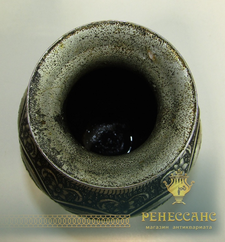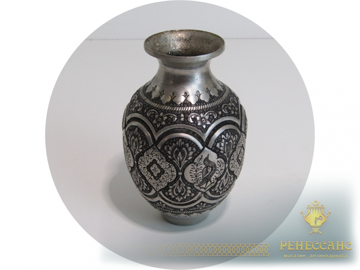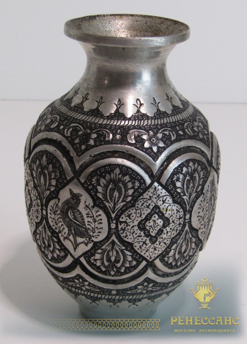 Иран СирияМедь, серебрение, чеканкаВысота 15,2 см, максимальный диаметр 10 см