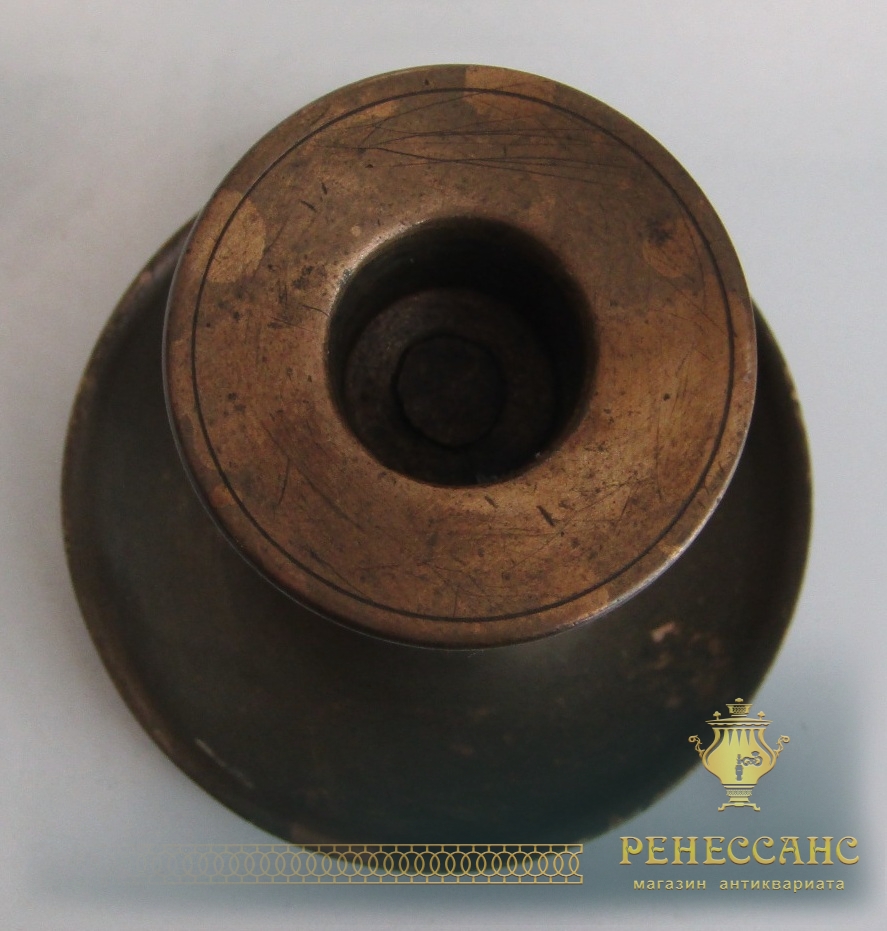Подсвечник старинный №13832Высота 10,7 см, диаметр 9,3 см, диаметр под свечу 21 мм