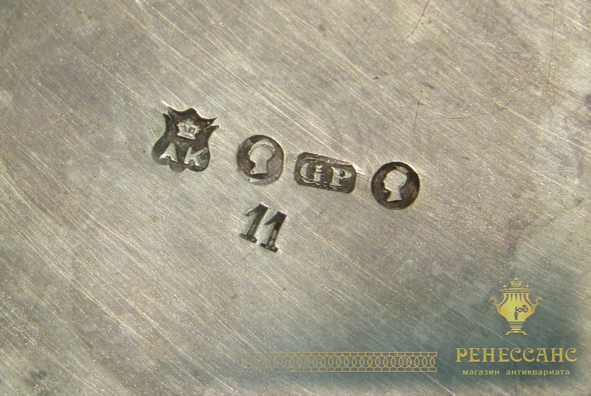 Клеймо на фото: "А. Кач" Россия 19 векМельхиор, серебрение, перламутрВысота 10 см, ширина 17,5 см