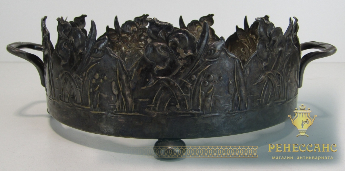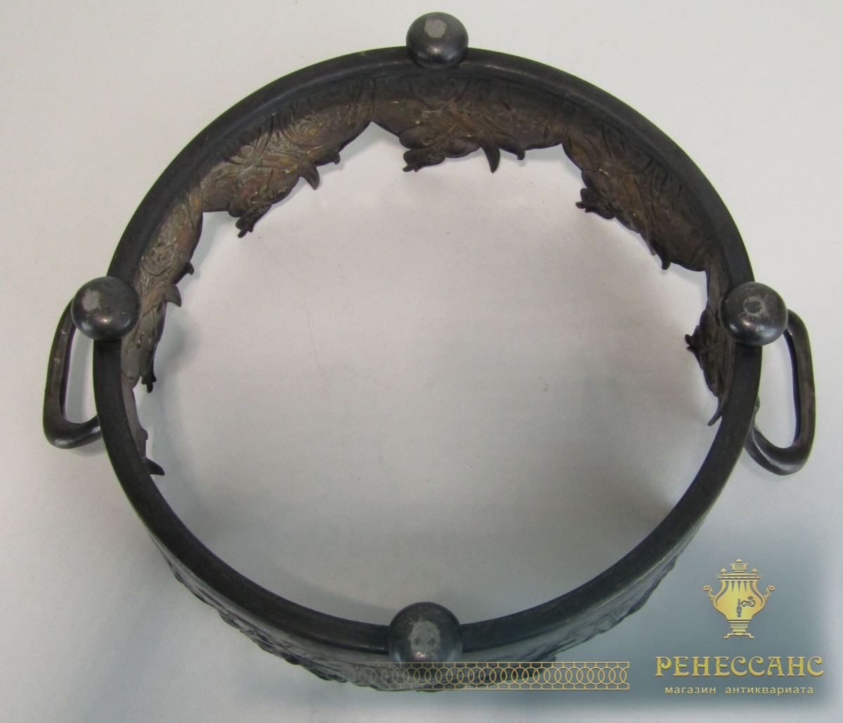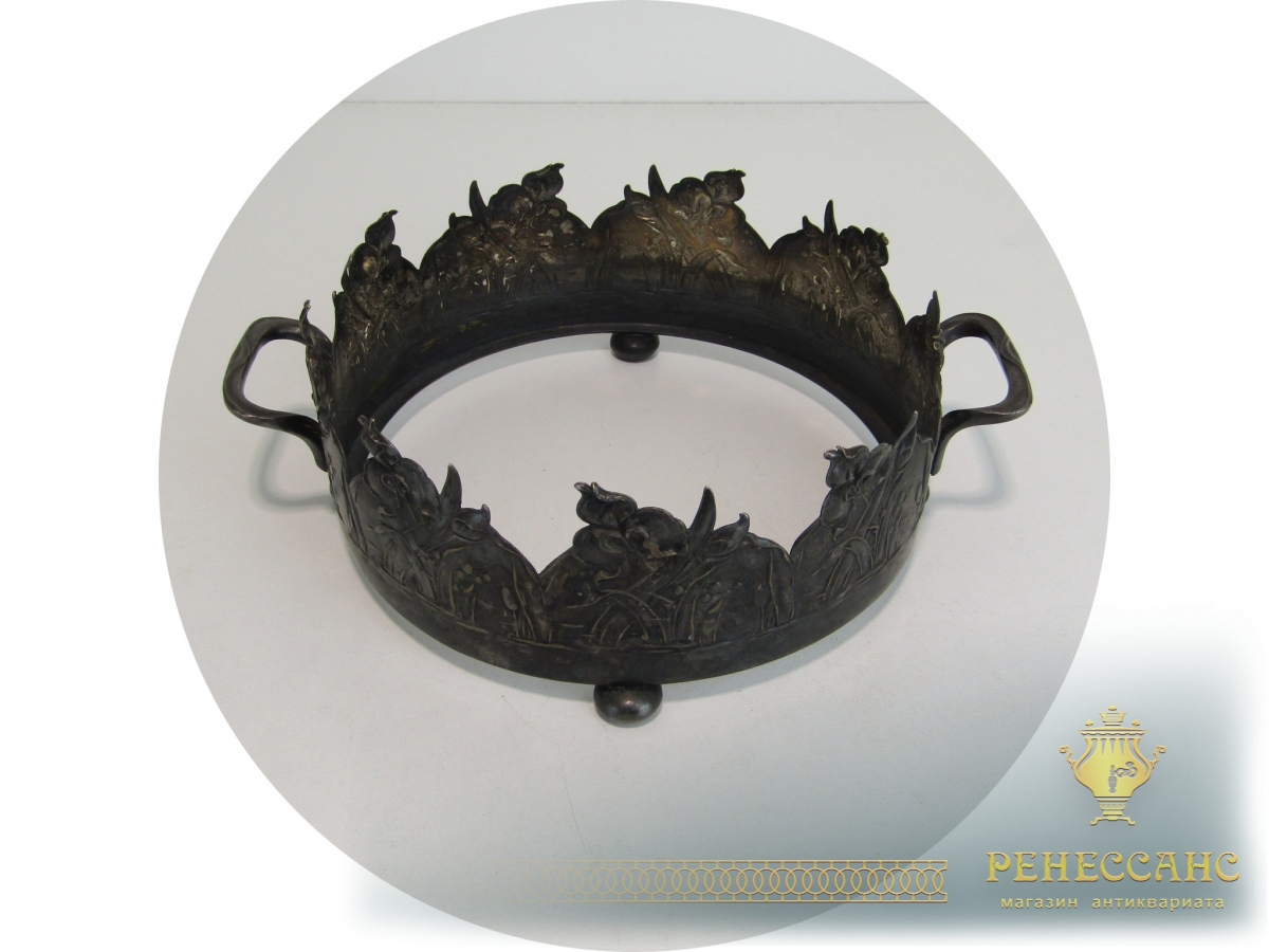 Клеймо не нашел. Фраже? 19-20 векВысота 8,8 см, ширина с ручками 27 см, диаметр под стекло 20,5 см, высота 7 смЛатунь, серебрениеОтличное состояние