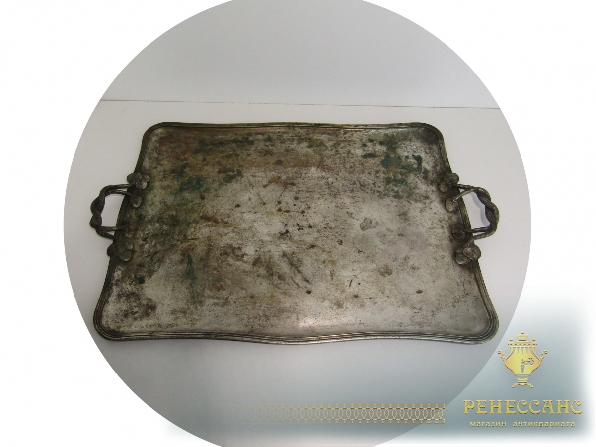 Поднос старинный с ручками №13625