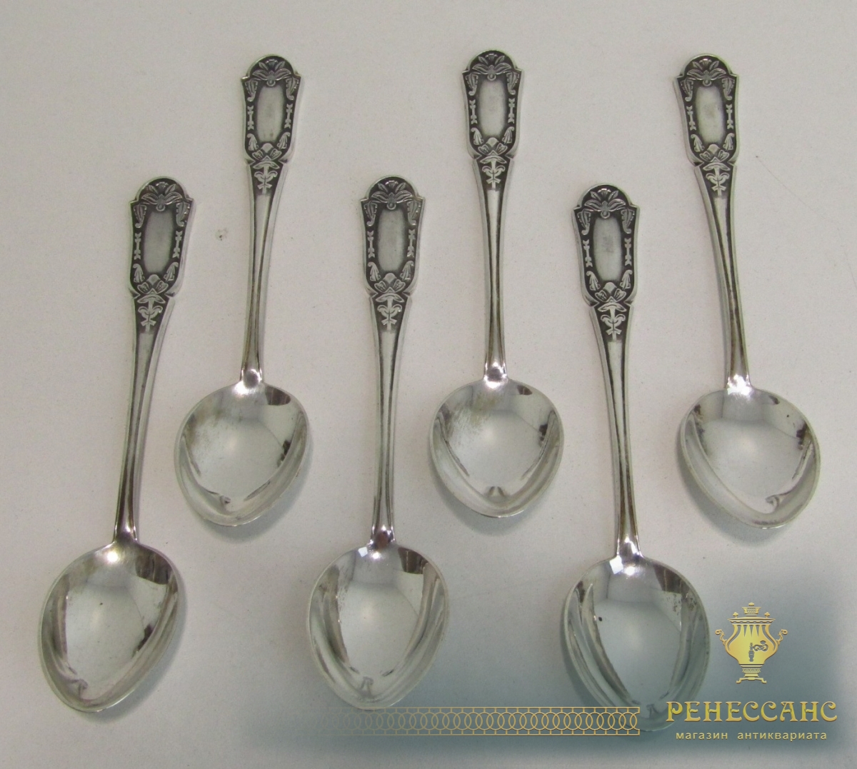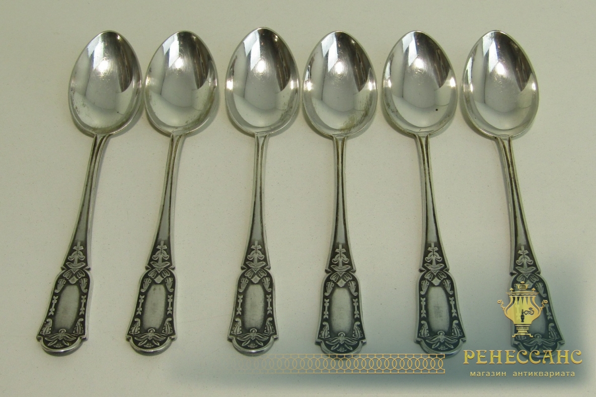 Ложки старинные, ложечка чайная Набор 6 шт №13462Серебро 875 пробы