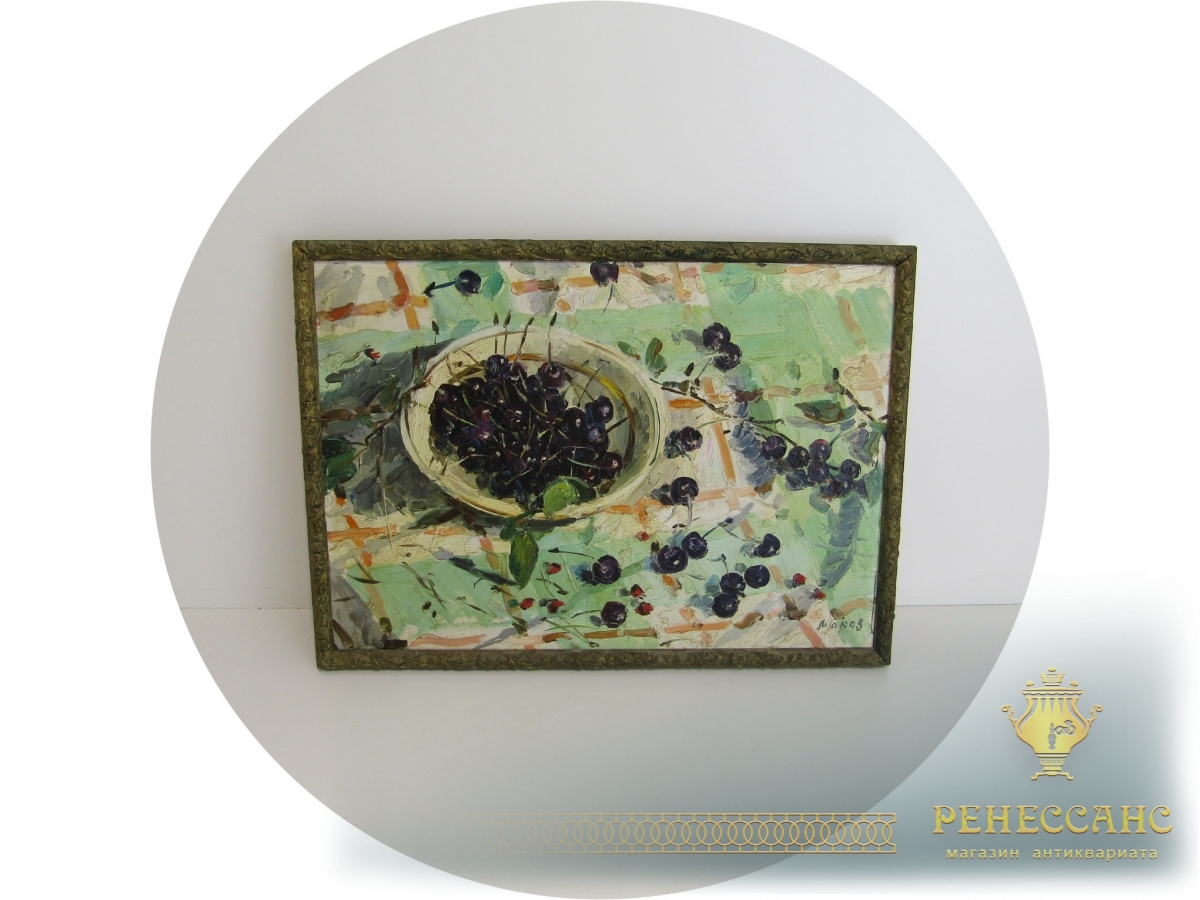 Картина старинная "Вишня" Масло Мороз 1981 год №13507