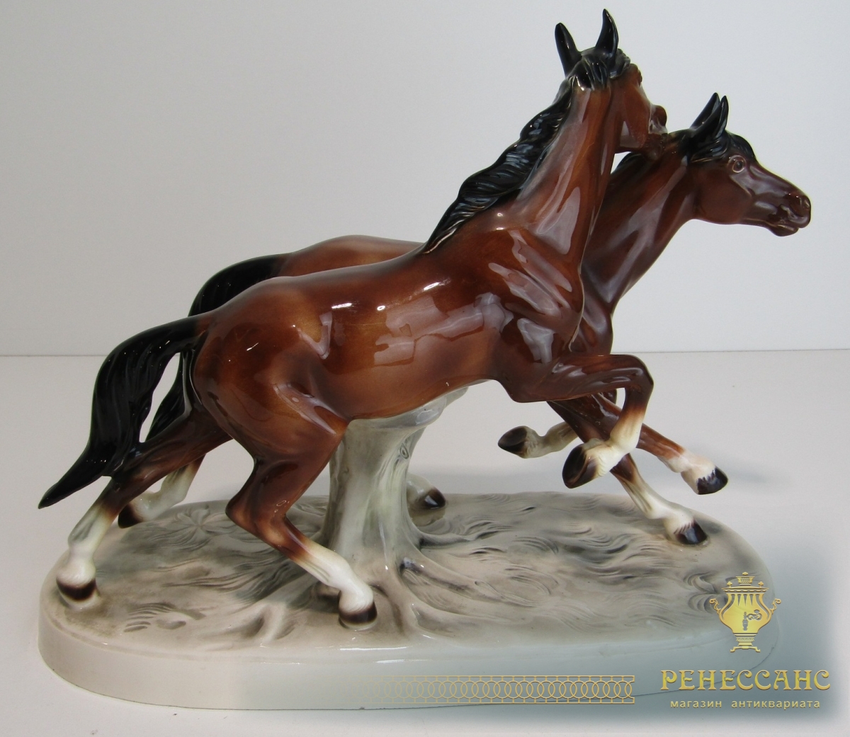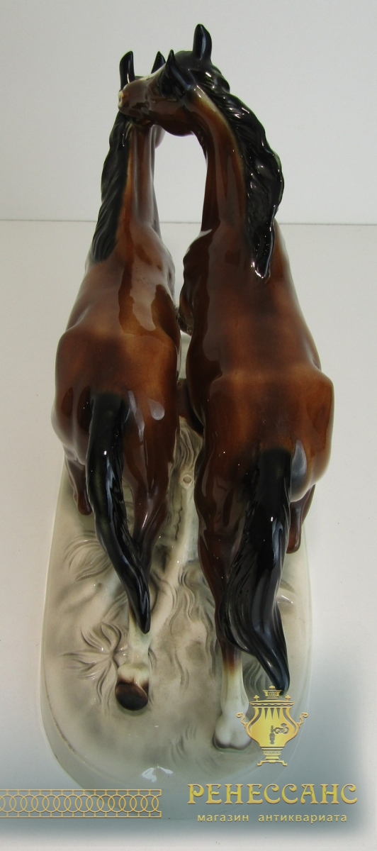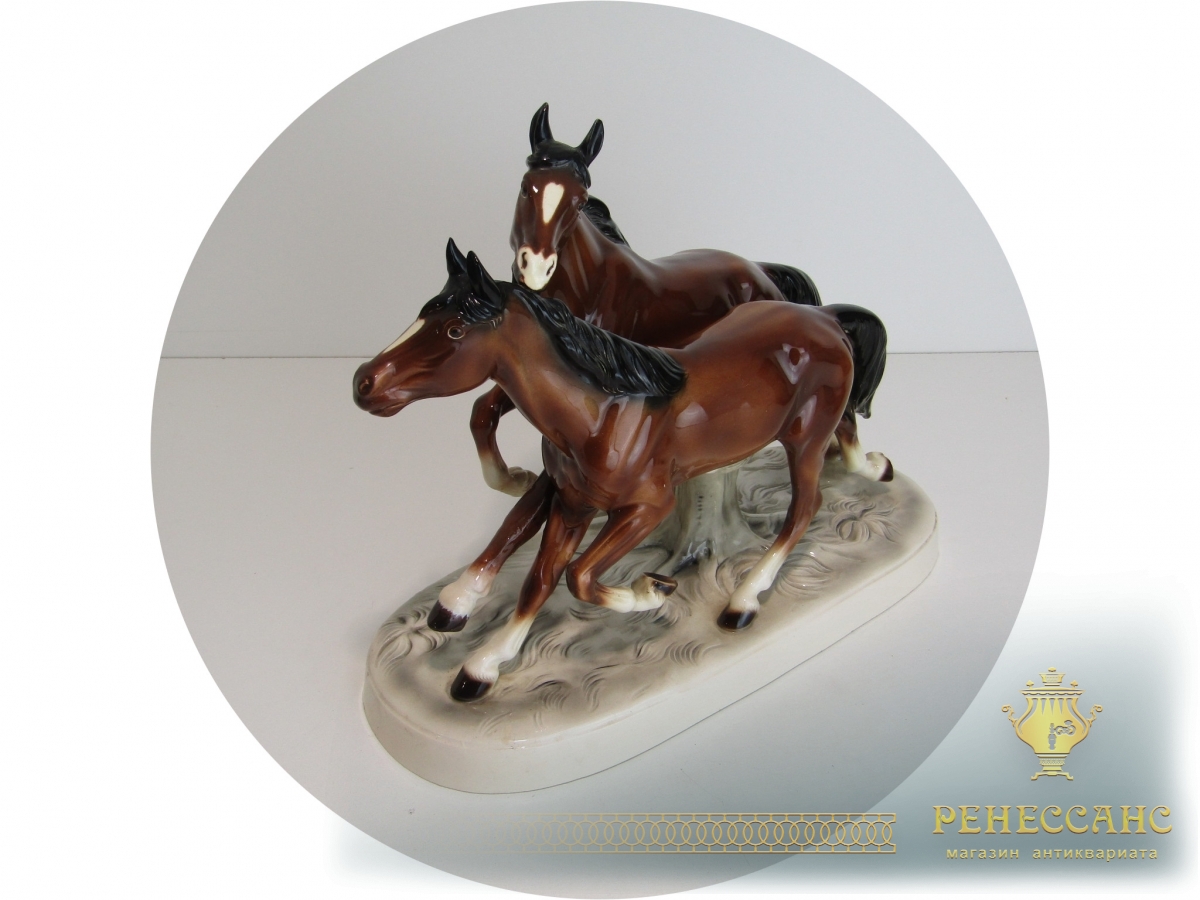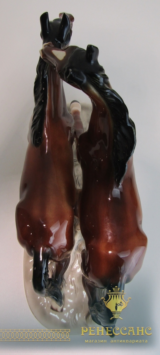Фарфоровая статуэтка, фигура "Лошади" №13884Клеймо на фото. Германия 20 векВысота 29,5 см, габариты 16,8*38,5 см