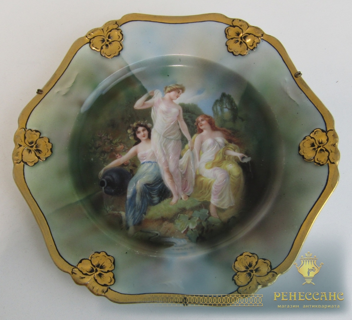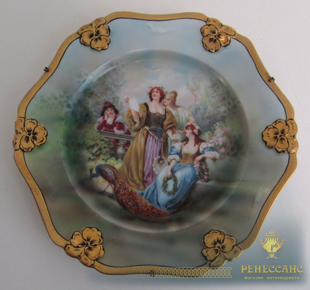 Старинная декоративная настенная тарелка с ручной росписью, панно Редкая!!! Пара №13781