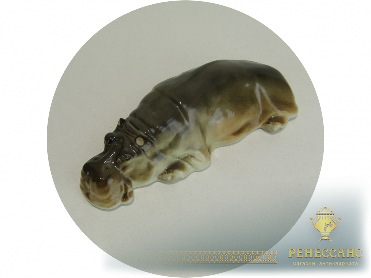 Статуэтка старинная, фигура "Бегемот Гиппопотам" Фарфор ЛФЗ №13424