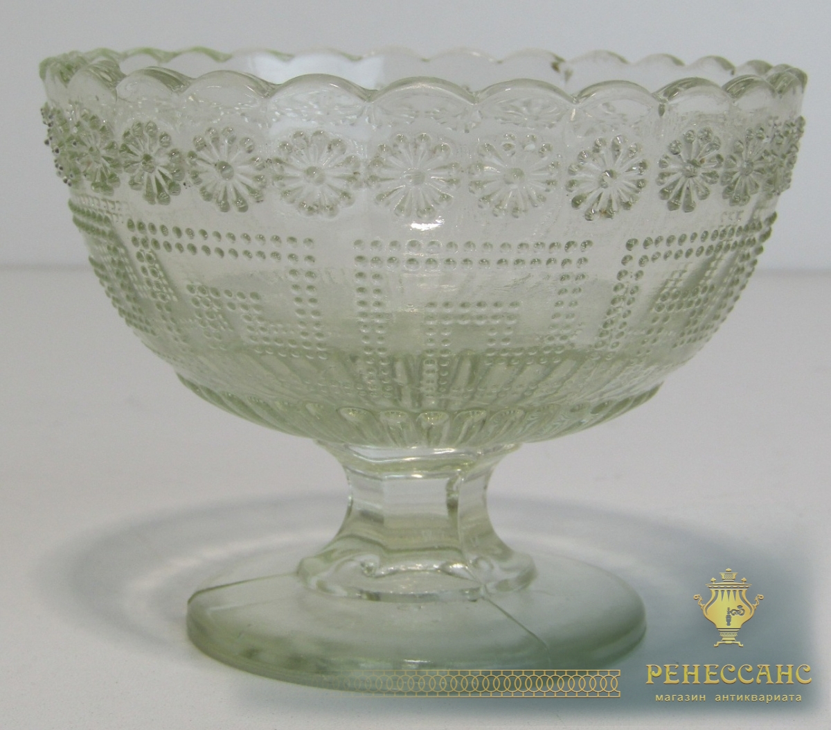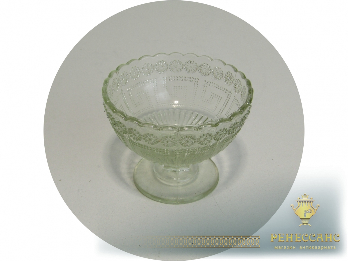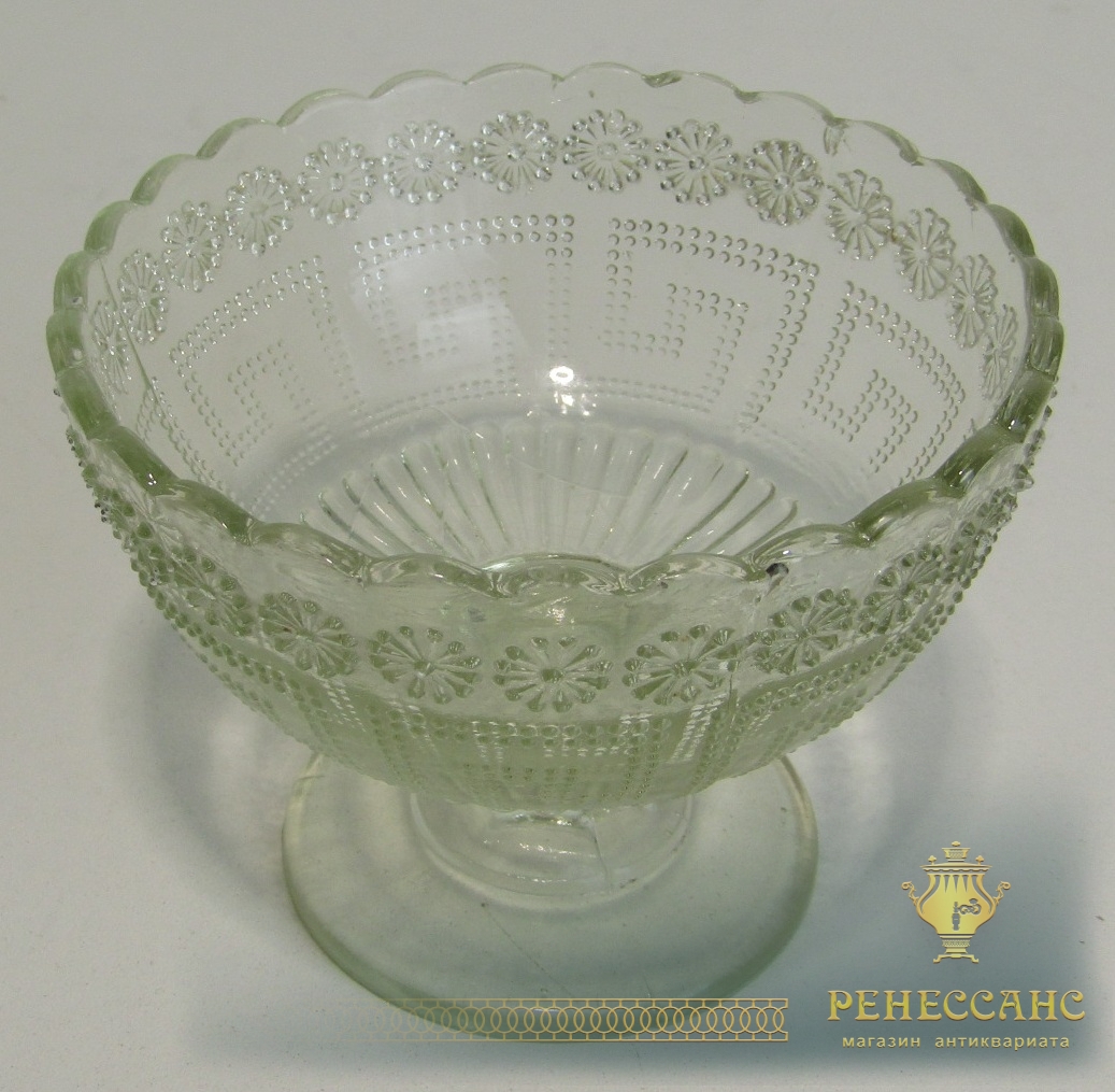 Вазочка старинная, конфетница, креманка №13945Мальцов? 19 век СтеклоВысота 8,2 см, диаметр 10,5 см