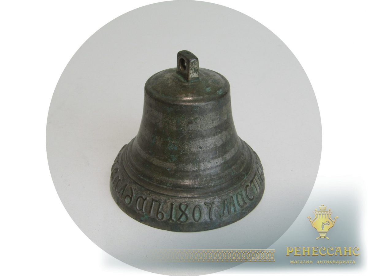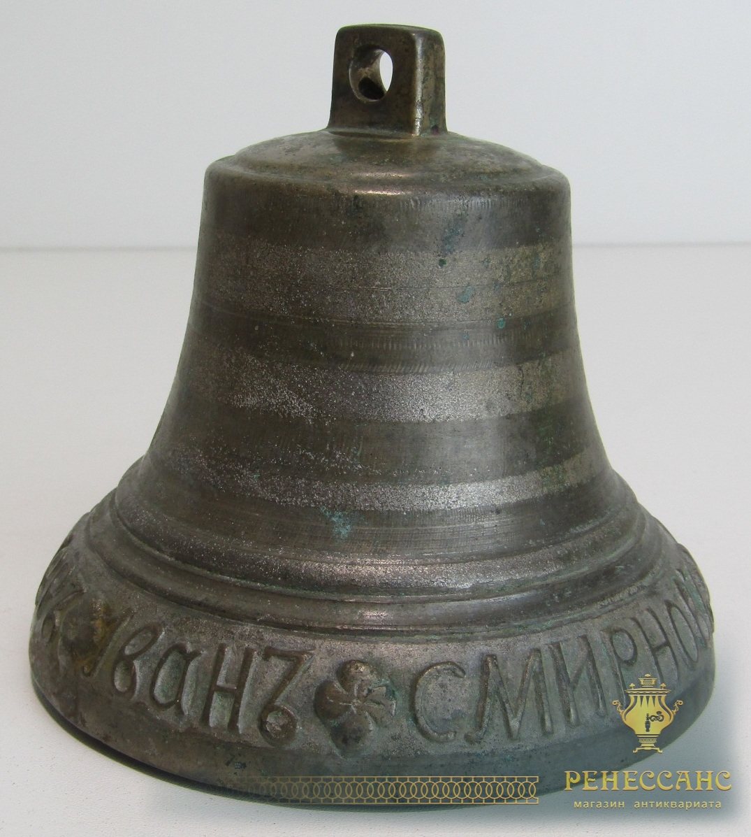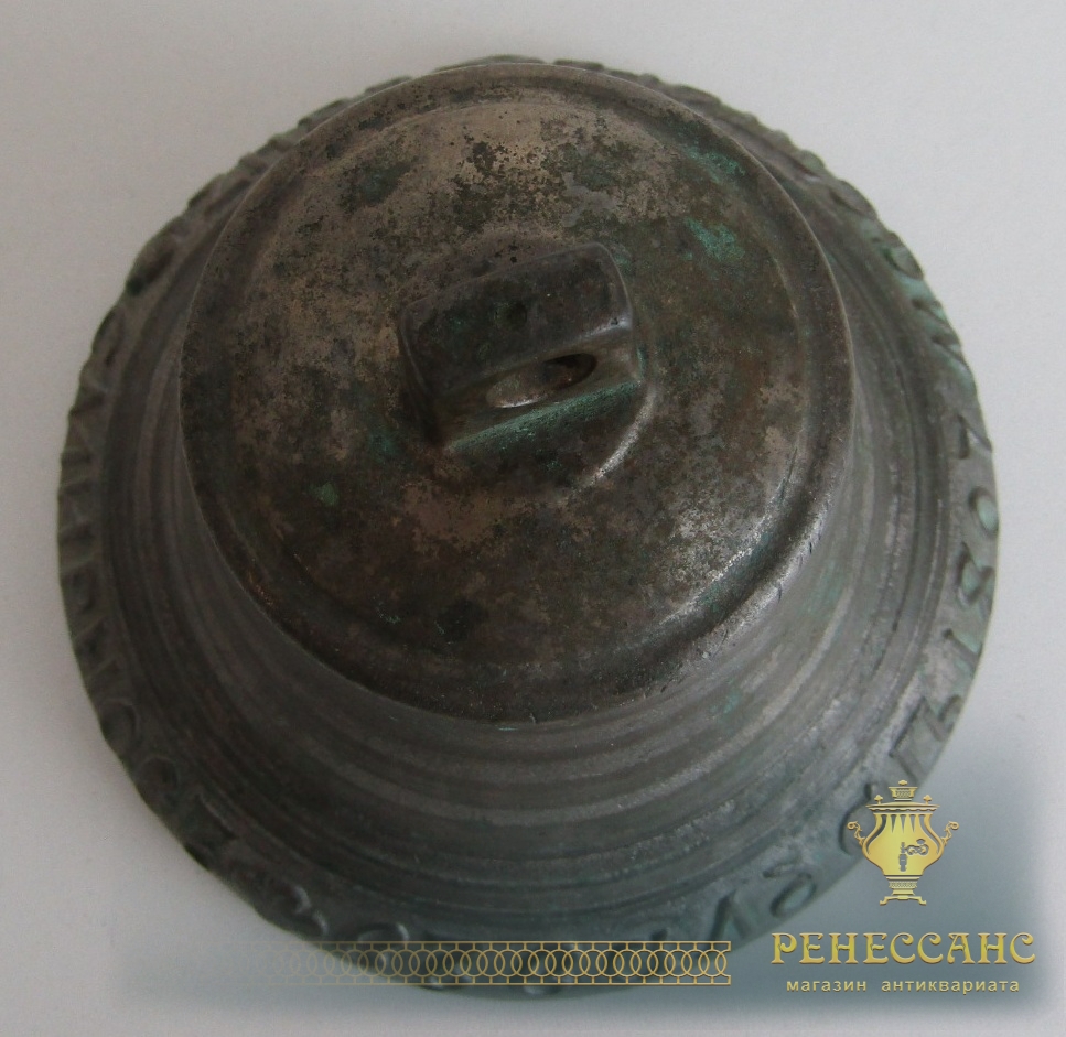 "Въ Валдаъ 1807 Мастеръ * Iванъ * Смирновъ *" Россия 19 векВысота 10 см, диаметр 10,6 см Бронза