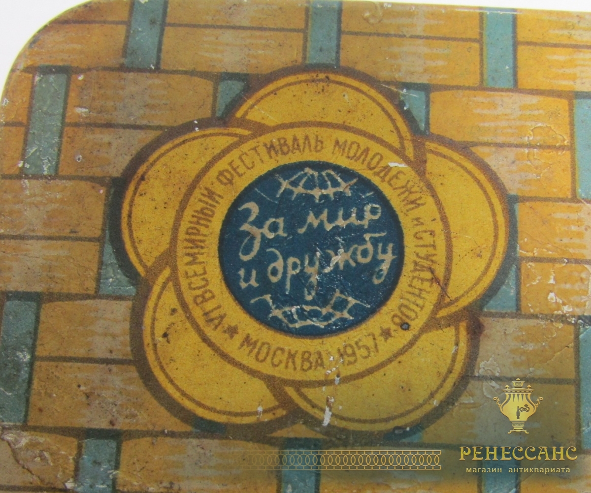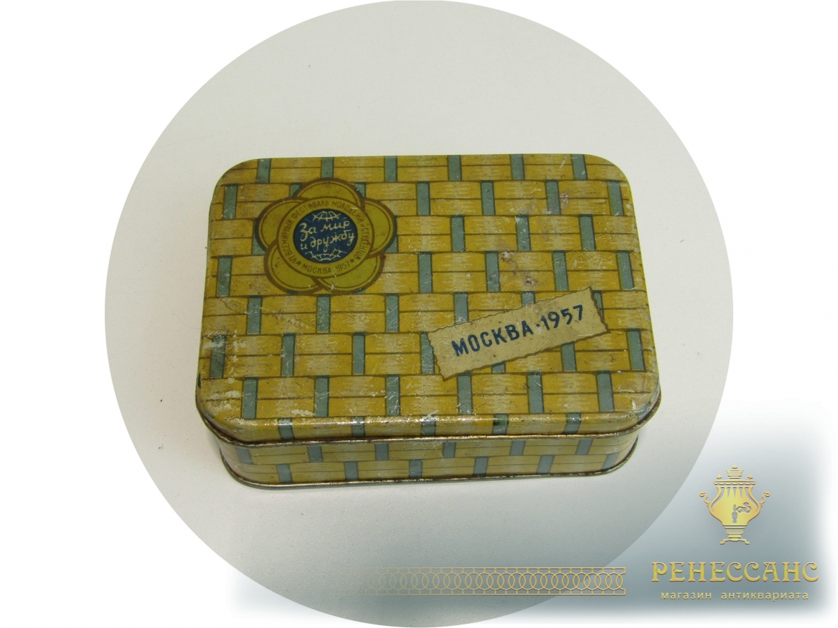 Всемирный фестиваль молодежи "За мир и дружбу" Москва 1957 годВыполнена из жестиВысота 4 см, габариты 8,6*12,2 см