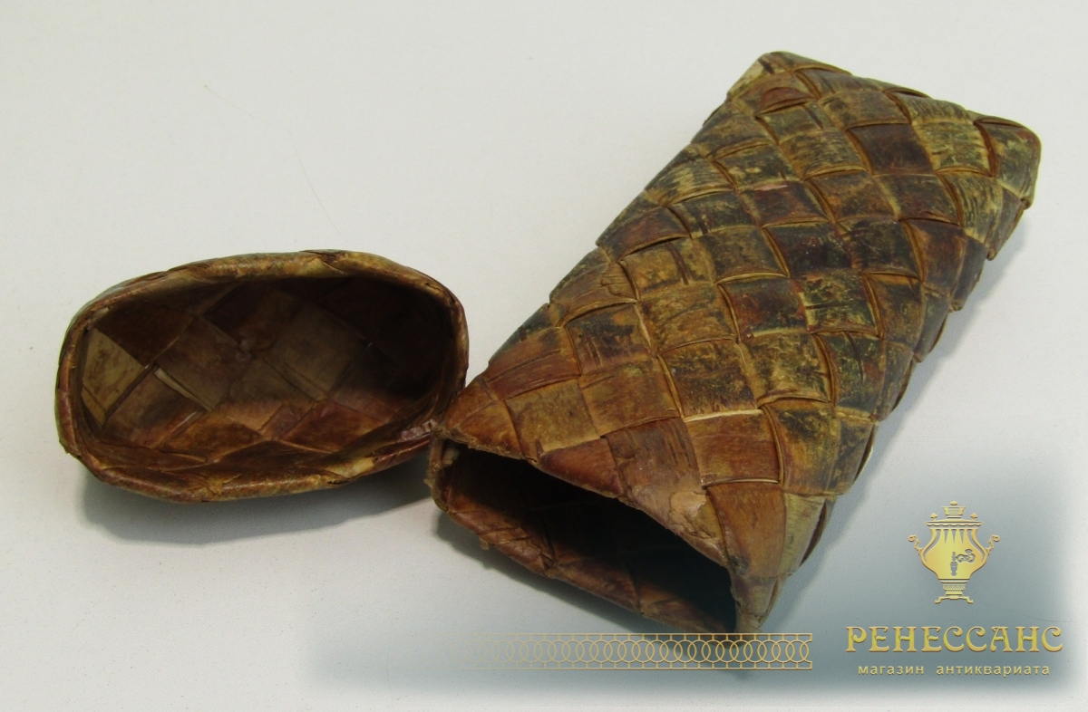 Туясок старинный из бересты, футляр, коробочка №13694
