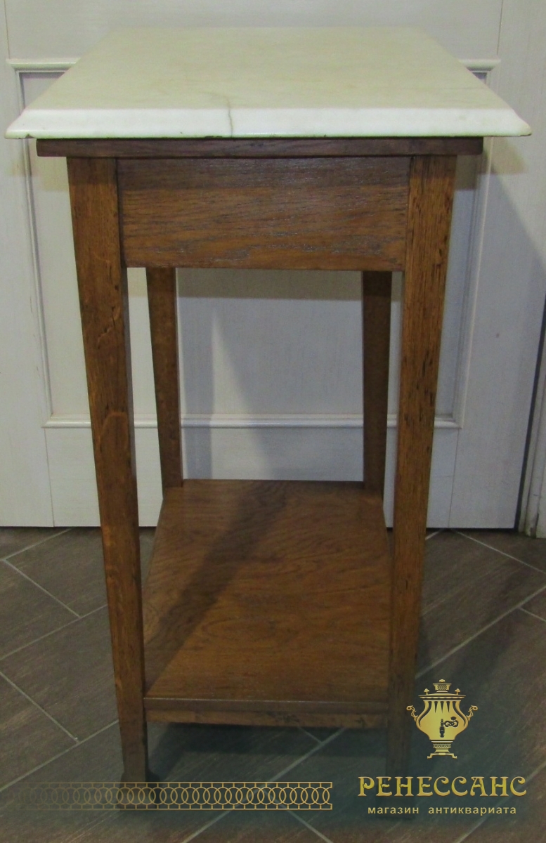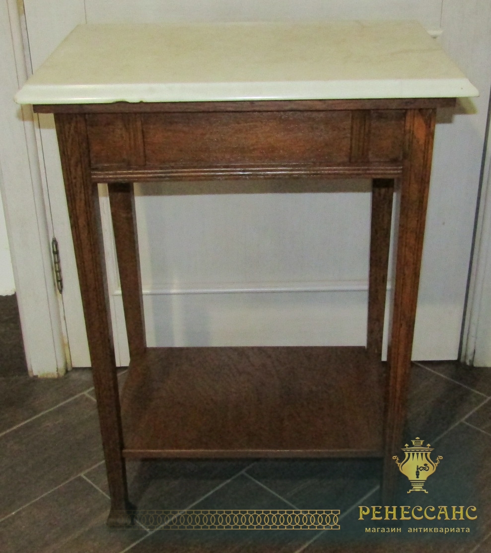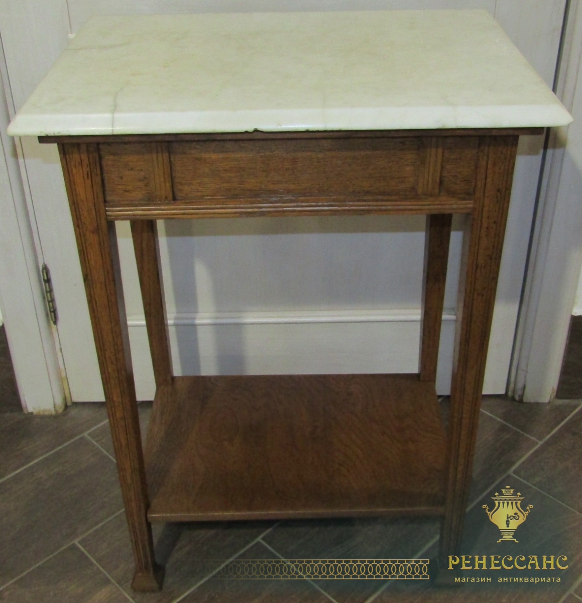 Столик, стол старинный под самовар с мраморной столешницей и ящиком №13480