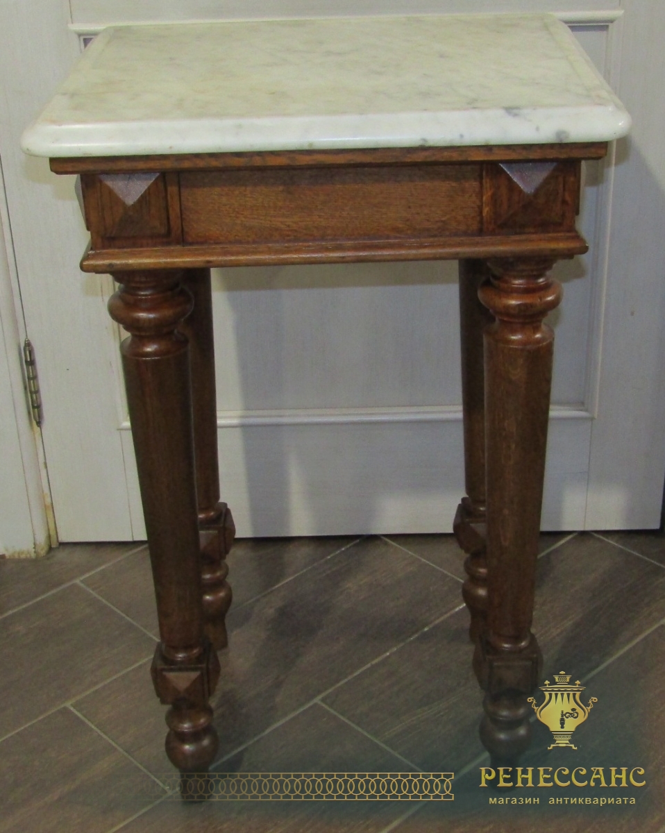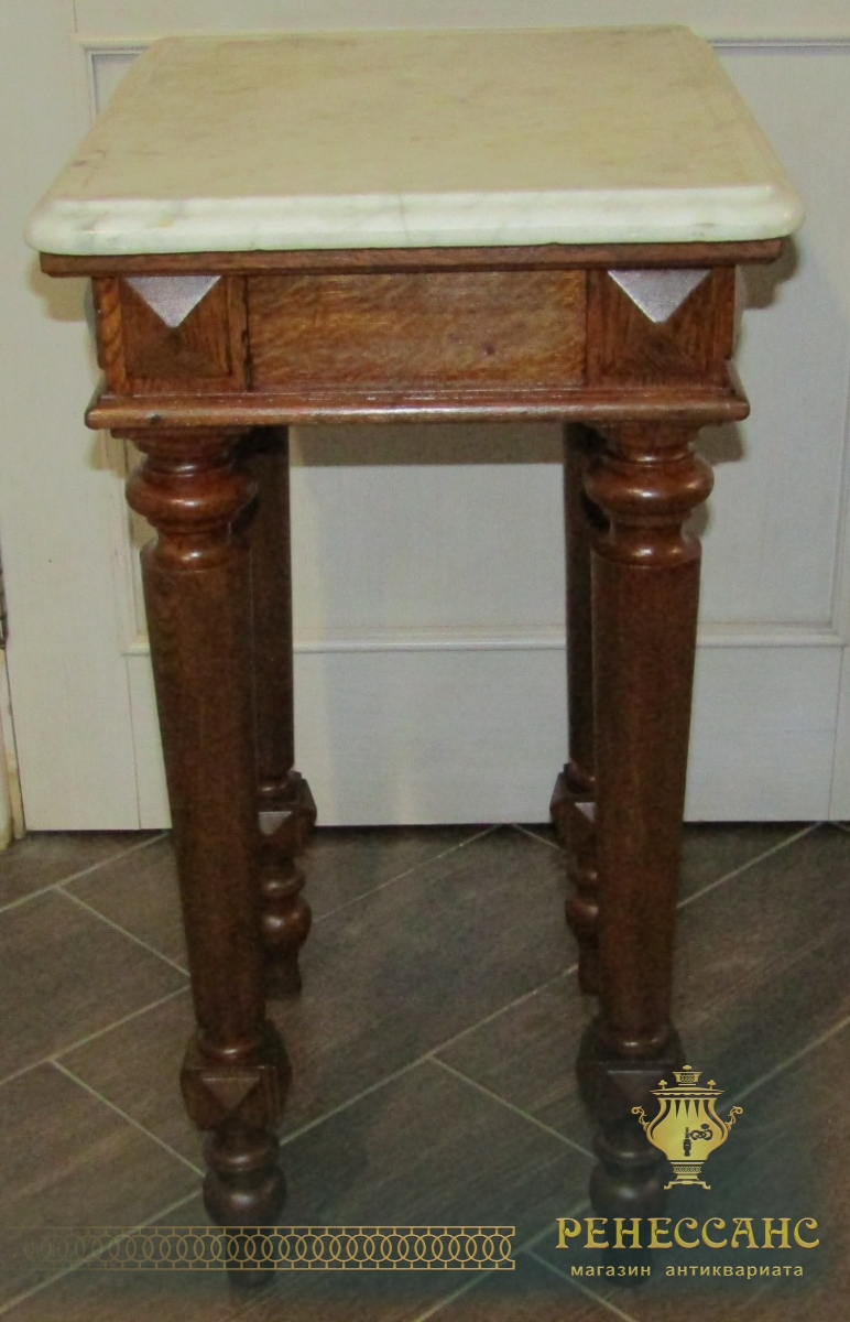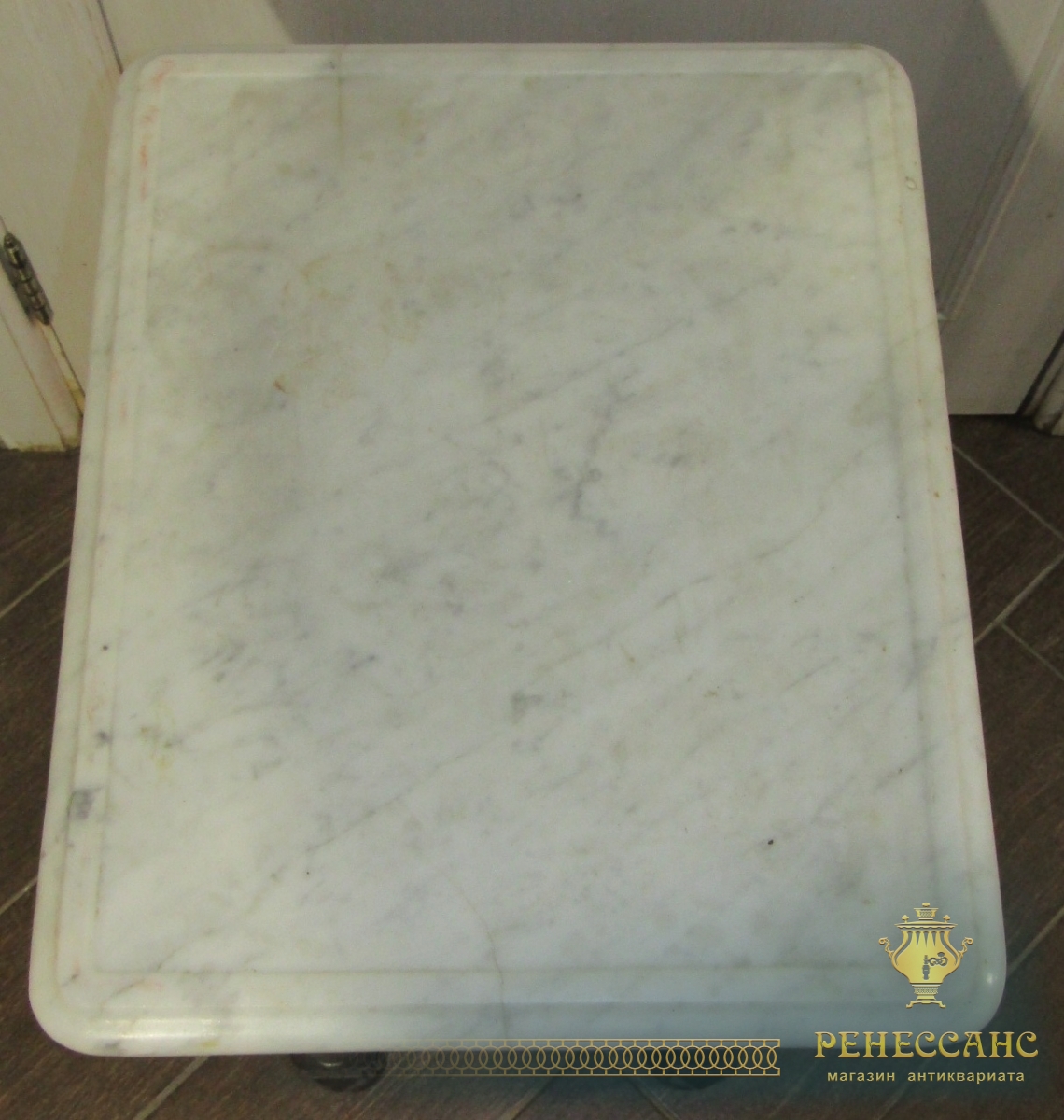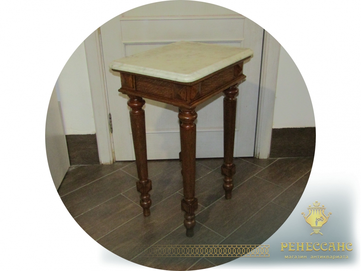 Столик, стол старинный под самовар с мраморной столешницей №13561
