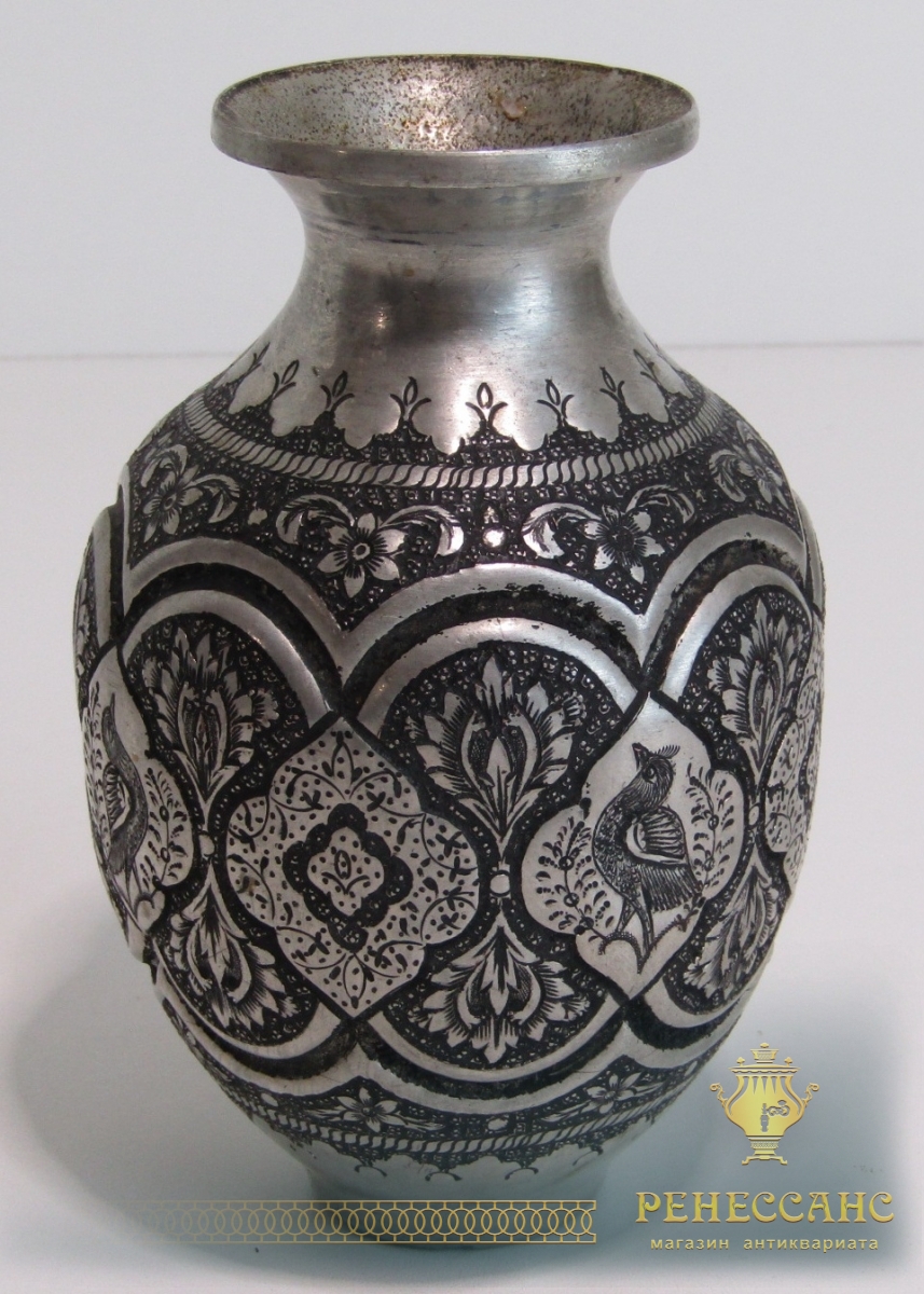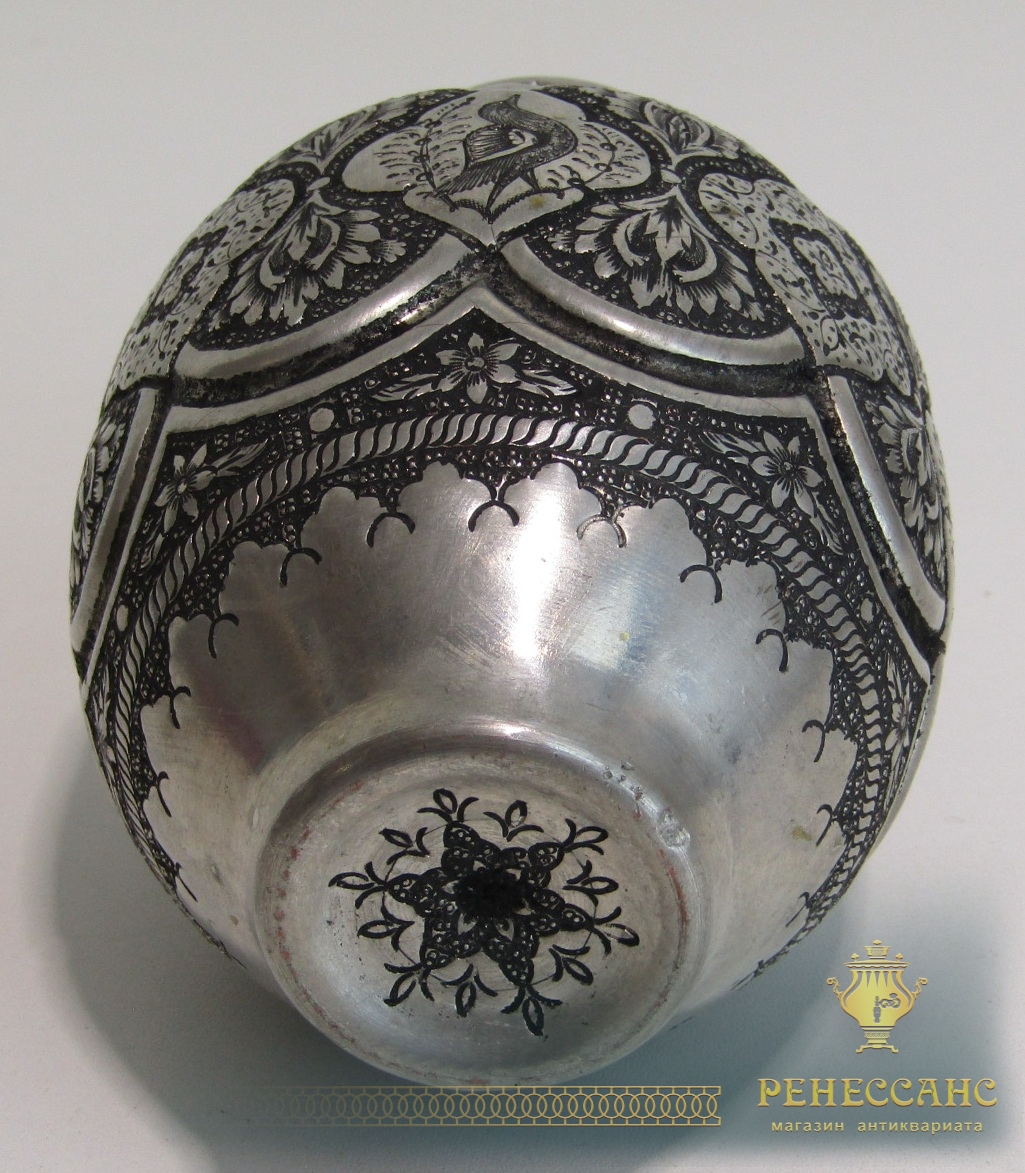 Иран СирияМедь, серебрение, чеканкаВысота 15,2 см, максимальный диаметр 10 см