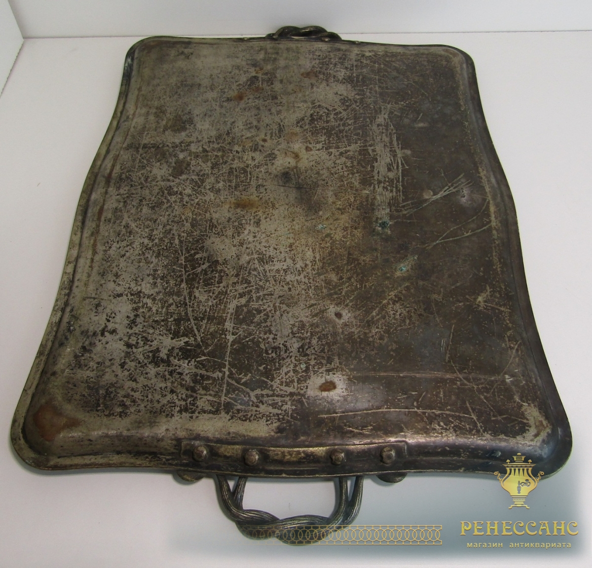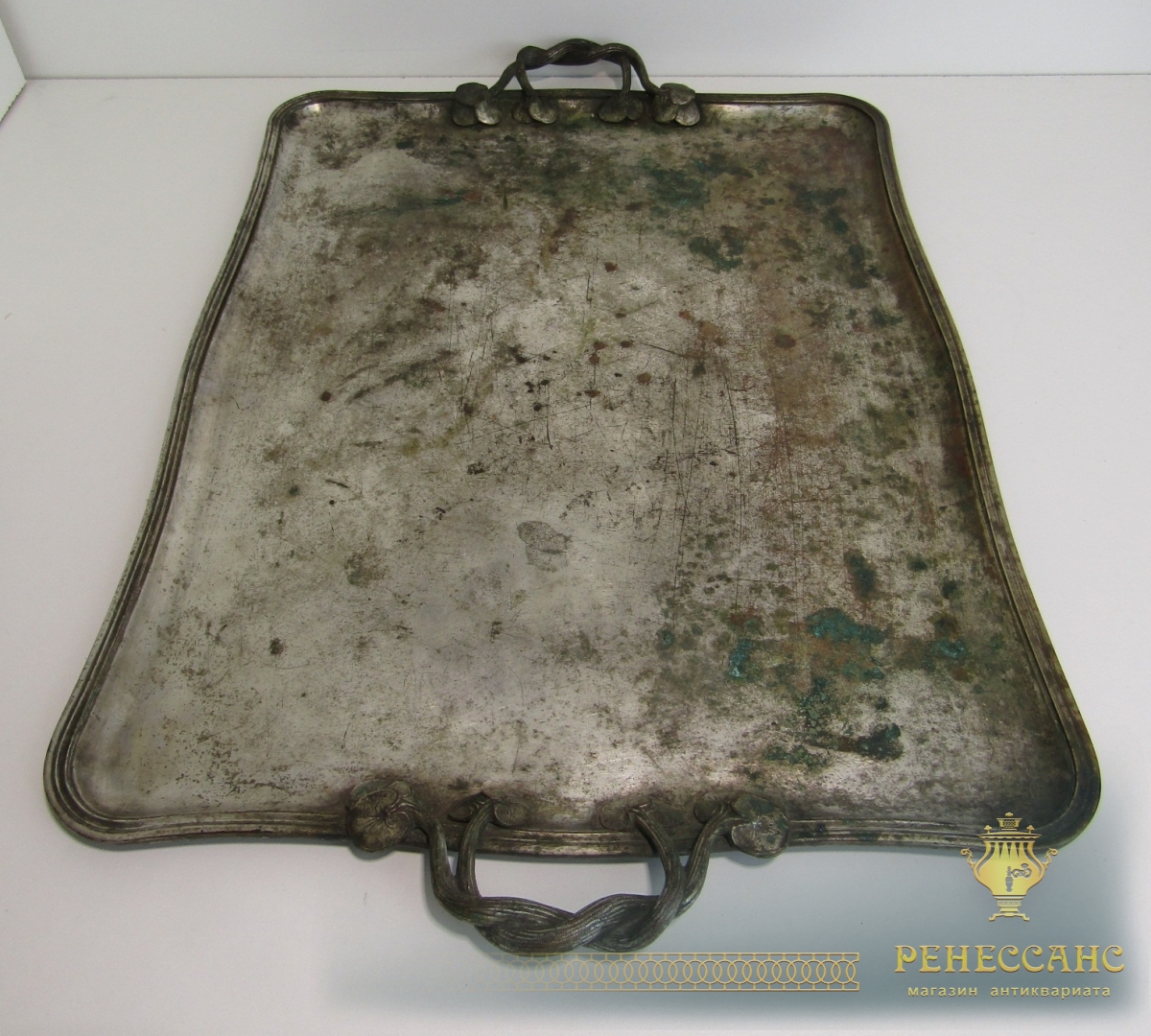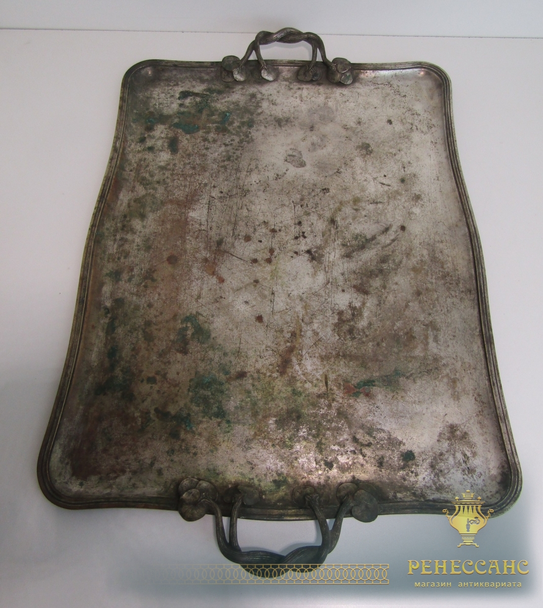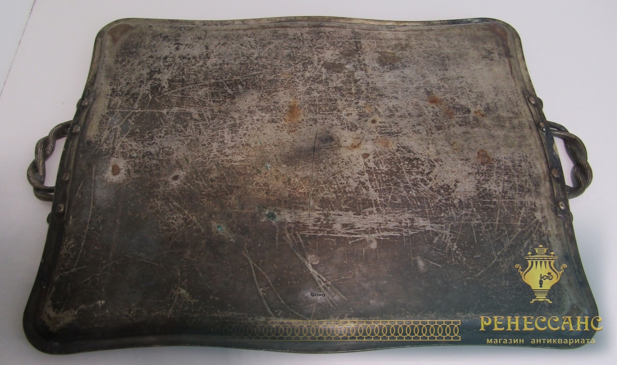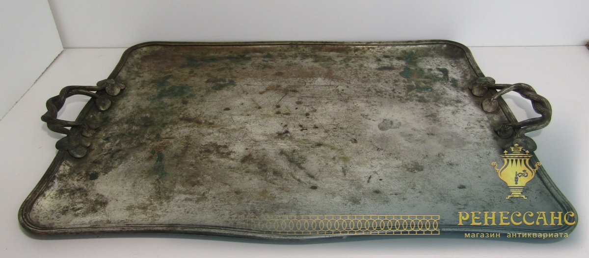 Поднос старинный с ручками №13625