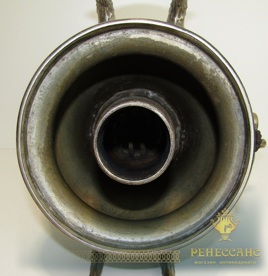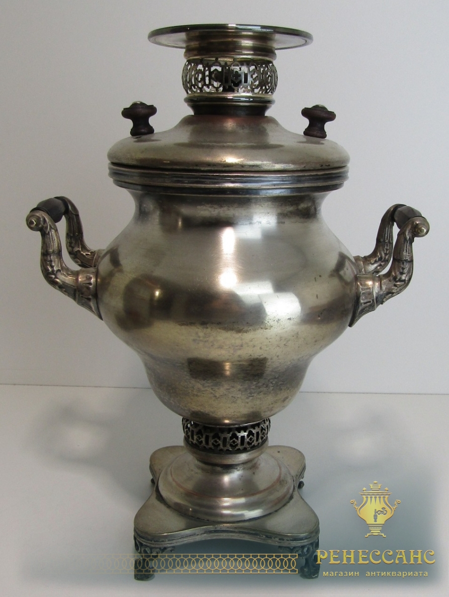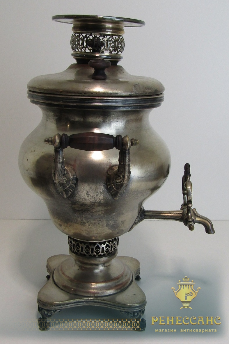Коллекционный угольный самовар с трубой на подносе и полоскательницей №1911