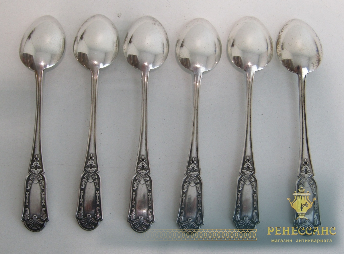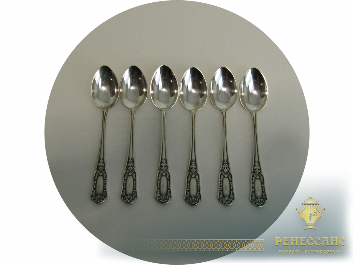 Ложки старинные, ложечка чайная Набор 6 шт №13462Серебро 875 пробы